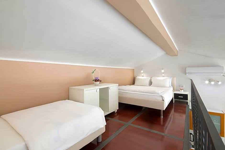 Featuring a furnished terrace with sea view, this air-conditioned apartment has a spacious living room combining kitchen facilities, a dining table, large sofa and flat-screen TV. One of the 2 bedrooms has an open gallery with another sleeping area upstairs.